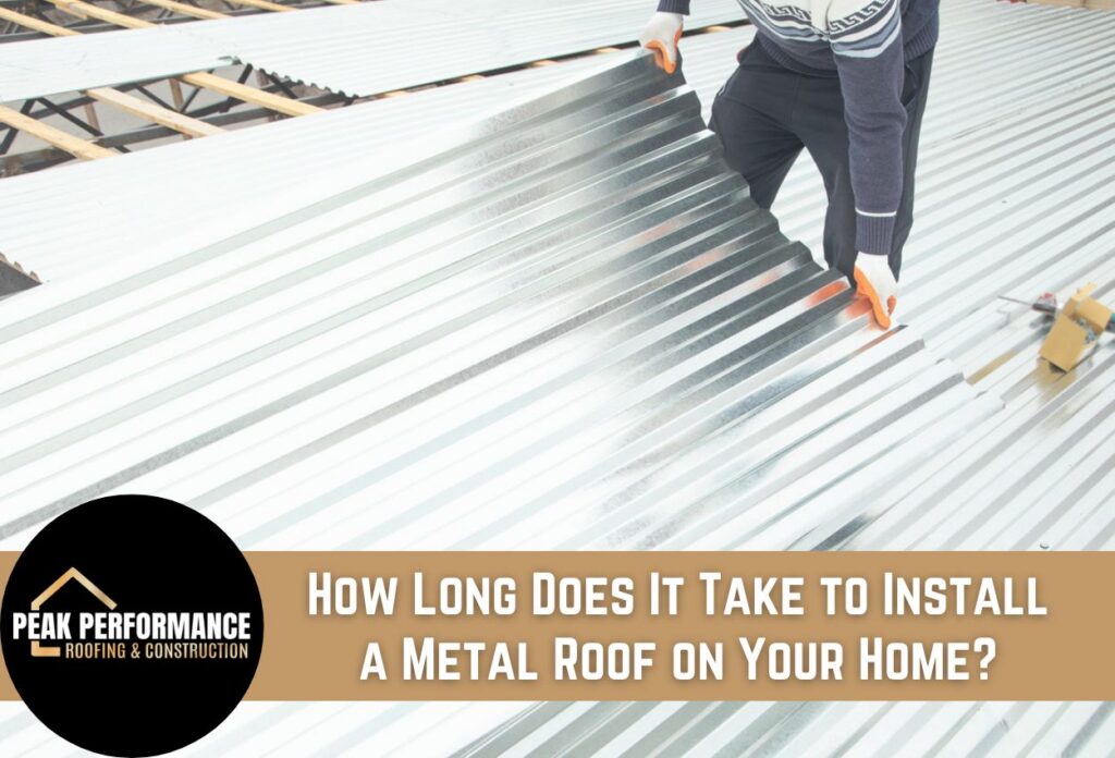 Understanding the timeline for installing a metal roof is important for planning your home renovation project efficiently. At Peak Performance Roofing & Construction, we ensure that every step of the metal roof installation process is handled with precision and speed, from the initial roof inspection to the final trim work. Whether you’re considering a standing seam metal roof or a more complex corrugated panel system, our expert team is equipped to provide a seamless installation experience.